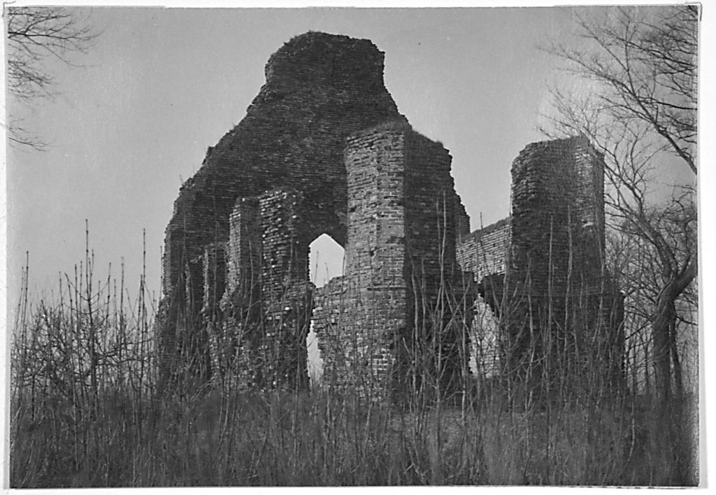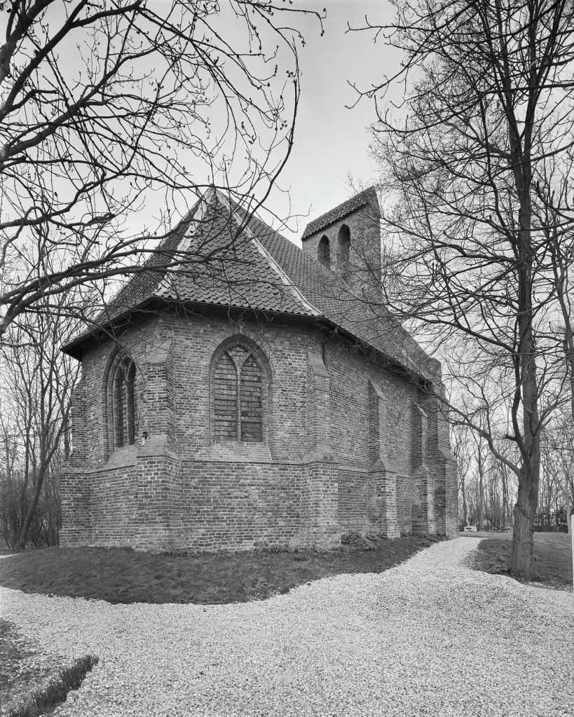 In de 15e eeuw werd de eenvoudige kapel vervangen door een grotere stenen dorpskerk. Dit gebouw werd in de 16e eeuw verwoest. Wat overbleef was een ruïne van het koor.